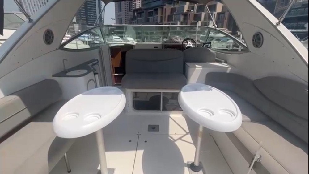 Engines recently serviced, hull fully painted, and backside fitted with new furniture upholstery. Clean, refreshed, and ready for use.